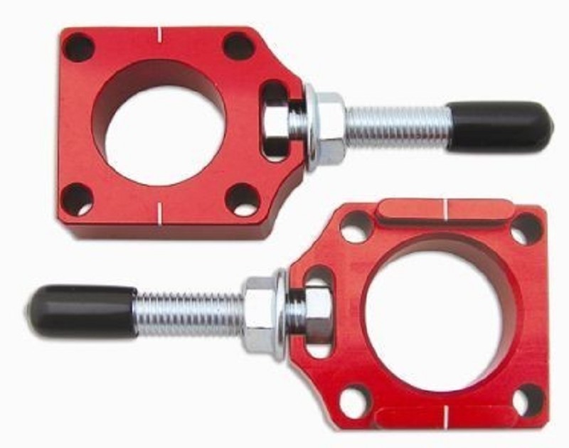 BOLT KAWA Chain Adjuster KAWASAKIKX125/250 04-07KXF250 04-16KXF450 04-15 RED Omschrijving Onze Billet Aluminium Chain Adjuster Blocks houden het wiel precies op zijn plaats terwijl je de ketting aanspant en blijft op zijn plaats, zelfs als de as is verwijderd! Het unieke ontwerp van Bolt betekent dat er slechts één 10 mm moersleutel nodig is om de ketting af te stellen. Elk blok van geanodiseerd 6061 aluminium is voorzien van gemakkelijk afleesbare lasergeëtste uitlijnmarkeringen. M8 roestvrijstalen bevestigingsmiddelen worden geleverd met draadsmeermiddel.Voor oudere modellen hebben we een 22 mm asborgmoer toegevoegd om te upgraden van de standaard splitpen en kroonmoer.SKU: CHAD-KX.RD, CHADKXRD