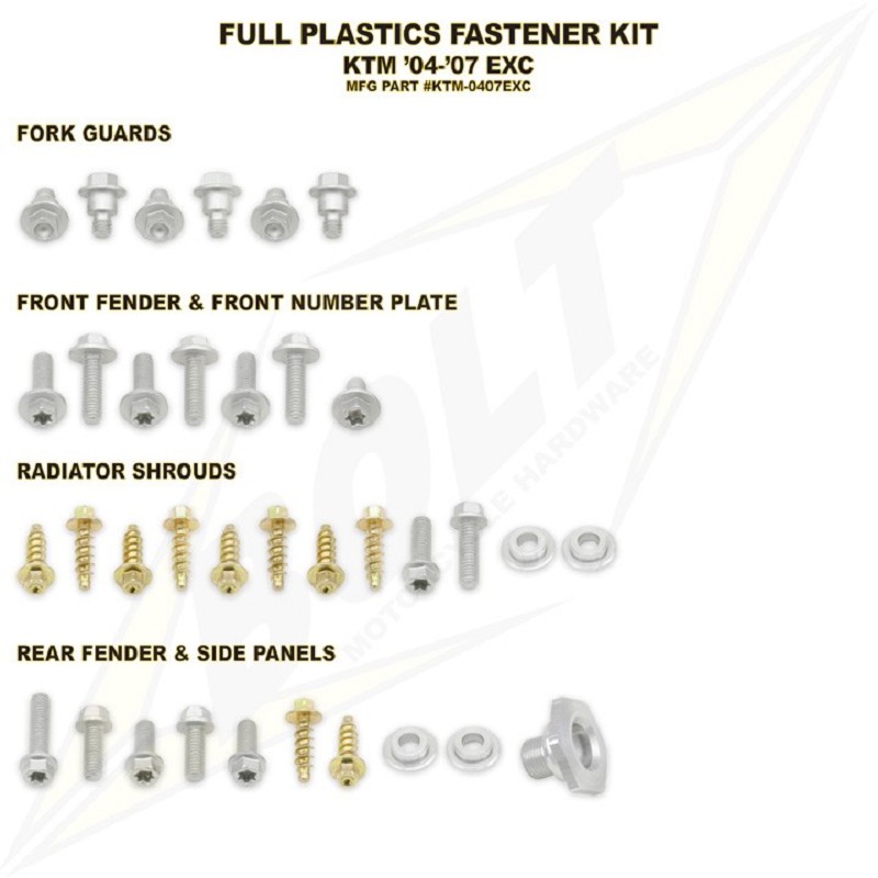 BOLT Full Plastic Fastener kit KTM EXC ALL 04-07