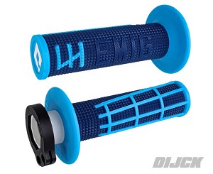 ODI EMIG 2.0 Lock On Grips NAVY / CYANALL 2 + 4-T ModelsODI MX V2 Lock-On Grips Half WaffleWhen the multi-time AMA Champion Jeff Emig wanted to revive his family brand EMIG Racing he came to ODI to develop a new grip. After being introduced to the new V2 Lock-On Grip system Jeff immediately saw the benefits of the new technology. In addition to the ease of installation, Jeff found that there were larger benefits such as a new smooth throttle tube with every new pair. He put his own custom design to the V2 system to develop "The best grip for racer's on the planet."- Redeveloping an all time favorite to make it even better and to give you an even more amazing riding experience- Softer, medium durometer compound for improved comfort- Tall knurls for improved crush and better traction with subtle tacky feel- Revised, taller waffle deliver excellent finger traction- Softer branding, with tone on tone micro-ribbed EMIG Logo- Same amazing ODI V2 Lock-On System, including 6 Throttle Cams; B, C, D, J, K & M- Refreshed colorways, matching all brands fitting most popular MX/Off-Road Bikes- Includes blue clamp.- Met het ODI Lock-on systeem kun je in enkele seconden handvaten wisselen zonder het gebruik van draad of lijm. - Daarnaast bieden ze 100% anti-slip prestaties onder alle omstandigheden. - Inclusief handleiding voor complete montage informatie en installatie instructies. - Er zitten meerdere kammen in de verpakking om ze op alle merken 2 + 4 takt cross en enduro motoren te monteren.Handvaten Handvatten GripsSKU: H36EPUW