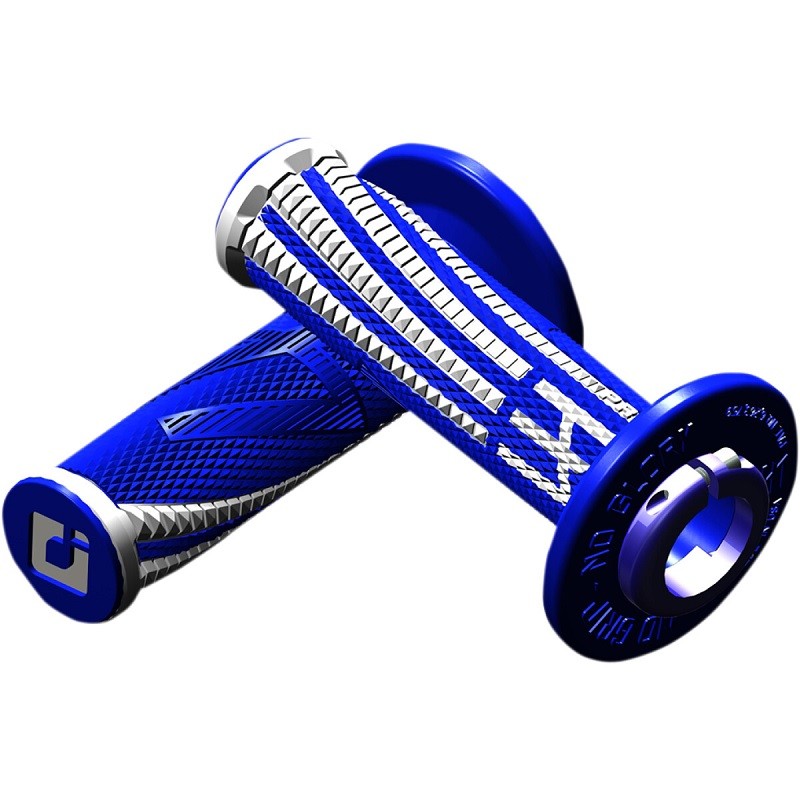 ODI Pro V2 Lock On Grips EMIG BLUE / WHITEALL 2 + 4-T ModelsODI MX V2 Lock-On Grips Half WaffleWhen the multi-time AMA Champion Jeff Emig wanted to revive his family brand EMIG Racing he came to ODI to develop a new grip. After being introduced to the new V2 Lock-On Grip system Jeff immediately saw the benefits of the new technology. In addition to the ease of installation, Jeff found that there were larger benefits such as a new smooth throttle tube with every new pair. He put his own custom design to the V2 system to develop "The best grip for racer's on the planet."- 100% Slip-Free Performance Guaranteed- Simple Installation and Removal Without Waiting for Glue to Dry- Throttle Tube Included with Snap On Cam to match more models- Knockout Ends Easily Accommodate Handguards- No safety wire required means longer grip life, even in the event of a crash- Medium Diameter knurled pattern EMIG Design includes special designed half-waffle pattern with thumb reliefMet het ODI Lock-on systeem kun je in enkele seconden handvaten wisselen zonder het gebruik van draad of lijm. Daarnaast bieden ze 100% anti-slip prestaties onder alle omstandigheden. Inclusief handleiding voor complete montage informatie en installatie instructies. Er zitten meerdere kammen in de verpakking om ze op alle merken 2 + 4 takt cross en enduro motoren te monteren.Handvaten Handvatten GripsSKU: H36EPUW