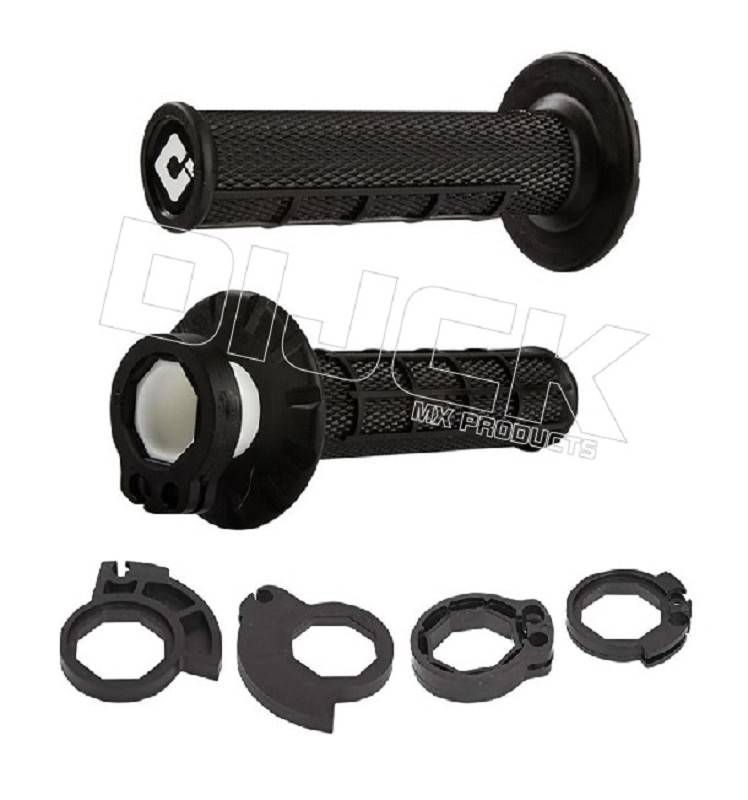 ODI Lock On Grips EMIG BlackALL 2 + 4-T ModelsODI MX V2 Lock-On Grips Half WaffleWhen the multi-time AMA Champion Jeff Emig wanted to revive his family brand EMIG Racing he came to ODI to develop a new grip. After being introduced to the new V2 Lock-On Grip system Jeff immediately saw the benefits of the new technology. In addition to the ease of installation, Jeff found that there were larger benefits such as a new smooth throttle tube with every new pair. He put his own custom design to the V2 system to develop "The best grip for racer's on the planet."- 100% Slip-Free Performance Guaranteed- Simple Installation and Removal Without Waiting for Glue to Dry- Throttle Tube Included with Snap On Cam to match more models- Knockout Ends Easily Accommodate Handguards- No safety wire required means longer grip life, even in the event of a crash- Medium Diameter knurled pattern EMIG Design includes special designed half-waffle pattern with thumb reliefMet het ODI Lock-on systeem kun je in enkele seconden handvaten wisselen zonder het gebruik van draad of lijm. Daarnaast bieden ze 100% anti-slip prestaties onder alle omstandigheden. Inclusief handleiding voor complete montage informatie en installatie instructies. Er zitten meerdere kammen in de verpakking om ze op alle merken 2 + 4 takt cross en enduro motoren te monteren.Handvaten Handvatten GripsSKU: H36HWB