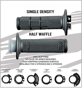 PRO-GRIP 709 Lock On Grips BlackGeen lijm of binddraad nodig !!Deze handvaten zitten geschroefd op het stuur wat montage zeer gemakkelijk maakt.Lock-On grips worden geleverd met 5 verschhillende cams, dat maakt dat deze passen op alle modellen van 125cc t/m 500cc.Te gebruiken op zowel 2-Takt als 4-Takt motoren !Pro Grip Partnumber: PA070900NE
