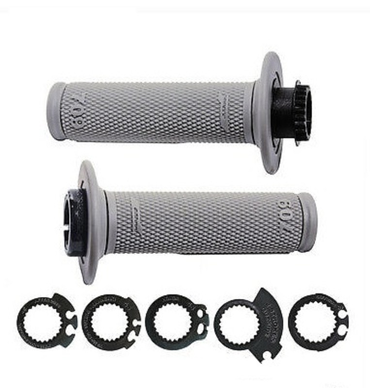 PRO-GRIP 709 Lock On Grips GreyGeen lijm of binddraad nodig !!Deze handvaten zitten geschroefd op het stuur wat montage zeer gemakkelijk maakt.Lock-On grips worden geleverd met 5 verschhillende cams, dat maakt dat deze passen op alle modellen van 125cc t/m 500cc.Te gebruiken op zowel 2-Takt als 4-Takt motoren !Pro Grip Partnumber: PA070900GR