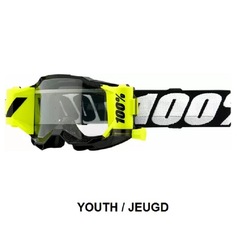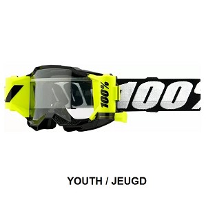 100% Goggle Accuri Forecast Goggle + Roll-Off SystemYOUTHBLACK YELLOWDescription:- A complete system comprised of working parts that function seamlessly together resulting in a smooth operating film system- Curvature suited for comfort and great field of vision- Constructed out of flexible yet durable urethane- Comes equipped with anti-fog, scratch resistant polycarbonate lens for unimpaired vision. Shared the same lens shape across the product line- Moisture managing triple layer foam- Oversized 45mm silicon coated strap holds your goggles in place in wet conditions- In the box are mud flaps, 2 rolls of film and a sublimated micro fiber bag- Transparent film canisters provide an easy view of remaining film- Smooth rolling drawstring for easy pulling- Filter Category 0- Light Transmission 88%-92%SKU: 50026-00001, 5002600001