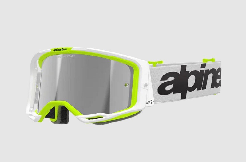 ALPINESTARS Vision 8 Wordmark Goggle WHITE / YELLOW FLUO SILVER MIRROR LENSDiscription:Tested by top drivers worldwide, the Vision 8 Goggles are designed and developed with two objectives in mind: comfort and performance. Strategically designed outriggers with the exclusive 13-degree Strap Wedge that allows the lightweight A-FLEX frame to create an unparalleled fit. An advanced RAM-AIR ventilation system, together with 3D-molded facial foam, ensures the Vision 8 Goggles provide maximum performance levels no matter the conditions.SKU: 51013252501, 5101325-2501-OS, 5101325 2501