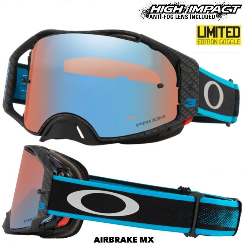 OAKLEY Goggle Airbrake Tomac SignaturePrizm Sapphire LensPRODUCT OMSCHRIJVING Detail voor de Oakley Airbrake MX Crossbril- PRIZM™ lenzen zijn contrast verhogend en zorgen voor minder last bij overgang van donker naar licht en andersom- 3-Laags sneldrogend gezichtsschuim- Lichtgewicht kunststof materiaal- Switch- Lock systeem (bekijk video)- Supergroot gezichtsveld- Geen druk op de neus door verbeterde design- Supersterke Plutonite lens- Lens is 100% UVA/UVB/UVC bestendig- Antiaanslag lensDe Oakley Airbrake MX is gemaakt om het maximale uit een crossbril te halen. Een erg goed doordacht systeem zorgt ervoor dat het wisselen van lenzen kinderspel is (bekijk de video). De crossbril en lens is ontwikkeld voor een maximaal zicht van links naar rechts en boven en onder, dat zie je niet bij een andere crossbril. Motocross Bril, CrossbrilSKU: OA-OO7046-C7, 7046C700, 7046