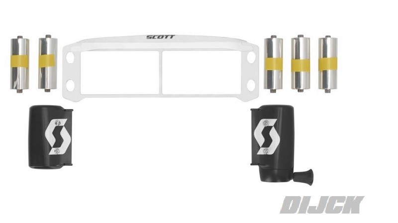 SCOTT Works Prospect Roll-off Kit BlackInclusief 5 rolletjes !!!De Scott Prospect crossbril start een nieuw hoofdstuk in een veelbewogen geschiedenis van Scott. Voortbouwend op 45 jaar ervaring, verlegt de Prospect grenzen van het gezichtsveld, comfort, lenzen, WFS technologie en nog veel meer!Prospect – Defend Your Vision’.50mm roll-off lint: het grootste zicht zelfs onder extreme omstandigheden.Anti-stick rooster met geïntegreerde modder flap: dé optimale oplossing voor roll-off lint zonder te plakken. Een groter lint vereist een opnieuw ontworpen en geoptimaliseerd anti-stick rooster met modder flap. In het midden van het rooster is een dunne verticale lijn toegevoegd, zodat het lint daar ook niet aan de lens vastplakt vanwege de lenskromming. De modderflap is gemaakt van transparant materiaal dat een groter gezichtsveld biedt.Click-On roll-off systeem: eenvoudige installatie zonder gereedschap. Het systeem kan heel eenvoudig op de Works pinnen worden bevestigd. Het rode hendeltje zorgt dat het systeem veilig vast zit.Dé ultieme Works technologie: switchen van roll-off naar tear-offs was nog nooit zó makkelijk!