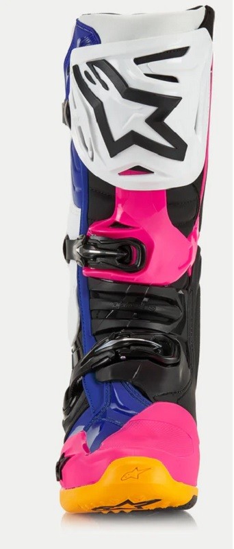 ALPINESTARS BOOTS Tech 10 LE COASTWHITE / DARK BLUE / PINK FLUORThe Tech 10 has set the standard for Motocross boot performance and protection for well over a decade and for summer 2018 the completely re-designed Tech 10 boot raises the performance envelope even further.Perfection through innovation; while maintaining the iconic Tech 10 look, the new boot represents an entirely new approach - improving its ability to give a rider the ultimate in feel, comfort and safety.The Tech 10’s re-design has been guided by three priorities as the Alpinestars technical footwear development team looked to improve overall functionality, performance and safety, decrease weight and reduce material volume. Maximizing these priorities is the key achievement of the new Tech 10 and the result is an all new boot with a greater range of movement and flexibilitywhile offering better control over the flexion and torsion forces that significantly improve boot performance, giving the rider greater confidence and protection.SKU: 20100202014Laarzen, Crosslaarzen, Cross Laarzen