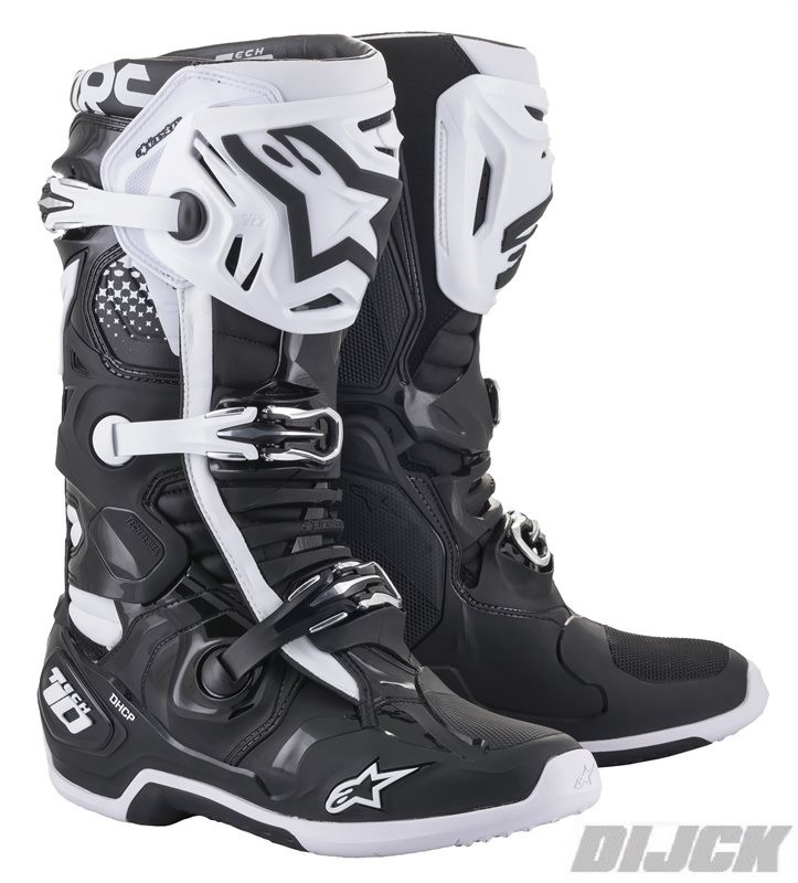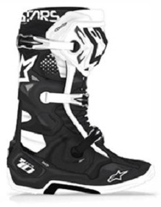 ALPINESTARS Boots TECH 10 Black / WhiteDescriptionRevolutionary external structure features ultra low profile design to minimize weight at the lower section of the boot and upper design developed for controlled flexibility, streamlined profile and superior grip against the bike. Innovative biomechanical inner bootie provides the ultimate in support and safety. Torsion bars control ankle and leg rotation, while allowing freedom of movement. Bootie structure features PU protection and shock absorbing padding on the heel and ankles and an ultra thin and flexible forefoot area for increased feeling of the controls. Perforated bootie is washable and replaceable.SKU: 201002012