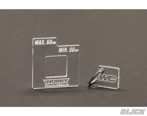 WORKS CONNECTION Chain Gauge Size 50-60mmGemakkelijk afstellen van de kettingInclusief GRATIS sleutelhangerDe kettingmeter zorgt ervoor dat je binnen enkele seconden binnen de specificaties bent dankzij een minimum-/maximummeting alles in één essentieel hulpmiddel.Easy to adjust your chainInclusive FREE KeyhangerThe Chain Gauge ensures that you are within spec in seconds thanks to a Minimum / Maximum measurement all in one essential tool.Partnumber: 17557, 17-557