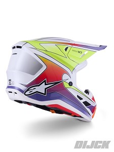 ALPINESTARS SM7 Fuse Helmet WHITE / YELLOW FLUO / PURPLE GLOSSY De S-M7 Helm is ontworpen voor off-road racen en is geoptimaliseerd om de perfecte mix van superieure ventilatie en comfort te bieden in een lichtgewicht helm, terwijl de uiterst aerodynamische composietschaal uitzonderlijke impactbescherming biedt. Naast Alpinestars gepatenteerde A-Head Fitment en Visor Detaching Systems, is de S-M7 uitgerust met innovatieve PLASMA-technologie aan de onderkant van de schaalrand voor optimale energiedissipatie in geval van contact met het sleutelbeen.Partnumber: 83019262054