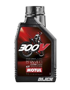 MOTUL OIL Gear Oil 300V 5W401 literProductbeschrijving:Olie merk: Motul- Geschikt voor voertuig(en): Motorfiets- Product type: Motorolie- Soort (kwaliteit): 100% Synthetisch- Type motor: 4-Takt- Viscositeit: 5W40PRODUCT OMSCHRIJVING - MOTUL 300V 4-TAKT FACTORY LINE 5W40100 procent synthetische high performance olie met een dubbele ester technologie 4-takt voor motoren. Standaard viscositeit, aangeraden door motorfiets fabrikanten wereldwijd. Bijzonder geschikt voor motorfietsen met de koppeling en de versnellingsbak smering in hetzelfde olie bad. Een optimale smeerfilm stabiliteit bij alle temperaturen en over lange afstanden. 100 procent afschuifsterkte en stabiele oliedruk onder alle omstandigheden. Speciaal ontwikkeld voor racesport. Overtreft de eisen van de JASO MA en API. Natte koppeling compatibiliteit test met JASO T904.