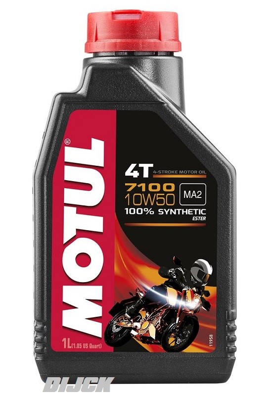 MOTUL OIL Oil 7100 10W50 1 literDe Motul 7100 4T 10W-40 is een 100% synthetische 4-takt motorolie op basis van Motul Ester Technologie. Voldoet aan de meest recentie specificaties van de motorfietsfabrikanten. Goede weerstand tegen hoge temperaturen ter bescherming van de versnellingsbak en de motor. JASO MA gehomologeerd. Voor een perfecte werking van de natte koppeling. Compatibel met katalysators Ester Technosynthese:De Motul 7100 is op basis van Ester-technologied en staat garant voor anti-slijtage en het verbeteren van het schakelen en geeft hoge bescherming en een lange levensduur. De ester technologie zorgt voor het soepel schakelen en verminderd het evt. olieverbruik.