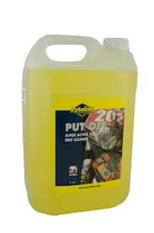 PUTOLINE Put Off Cleaner 5ltr.Beschrijving:Putoline Put Off Bike Cleaner is een ultra-efficiënte totaalreiniger voor motorfietsen, quads, fietsen etc. De geconcentreerde formule, voorzien van de nieuwste Nanotech-componenten, garandeert een veilige en krachtige reiniging en zorgt voor een langdurige bescherming, ook van de meest gevoelige oppervlakken (magnesium, geanodiseerde elementen, aluminium, etc.) Het product voorkomt de hechting van vuil en vergemakkelijkt het reinigen. Toepassing:Verstuif op heel het te reinigen oppervlak en laat ongeveer 5 minuten inwerken. Spoel daarna af met een krachtige waterstraal. Behandel hardnekkig vuil met een borstel of een spons.Niet te gebruiken op onbeschermde spiegelende oppervlakken.