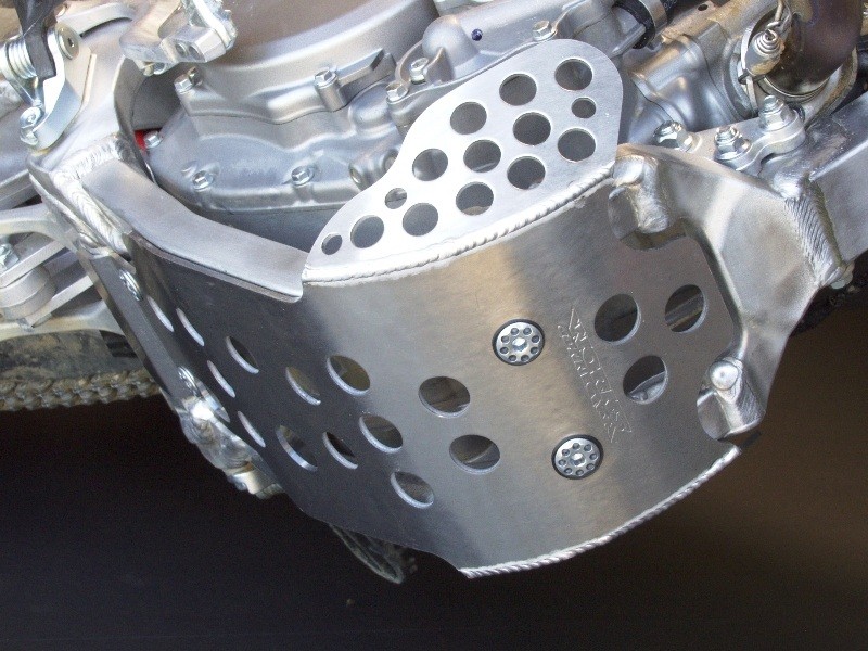WORKS CONNECTION Extended Coverage Skid Plate RMZ250 13-16• Unique Rubber Isolator Mounting System (RIMS) allows frame flex and rigidity properties to perform as the O.E.M. designed• CNC’d and formed from aircraft grade 6061 T-6 aluminum• Specific design and fit for each make and model • Narrow profile design coverage protects the frame rails and engine cases • CNC’d aluminum brackets with quality hardware for secure mounting• Skid Plate Foam included • Made in the USABodemplaat, Glijplaat