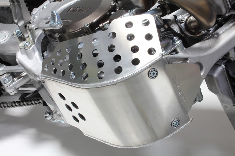 WORKS CONNECTION Extended Coverage Skid Plate WRF450 16-18• Unique Rubber Isolator Mounting System (RIMS) allows frame flex and rigidity properties to perform as the O.E.M. designed• CNC’d and formed from aircraft grade 6061 T-6 aluminum• Specific design and fit for each make and model • Narrow profile design coverage protects the frame rails and engine cases • CNC’d aluminum brackets with quality hardware for secure mounting• Skid Plate Foam included • Made in the USABodemplaat Skidplate