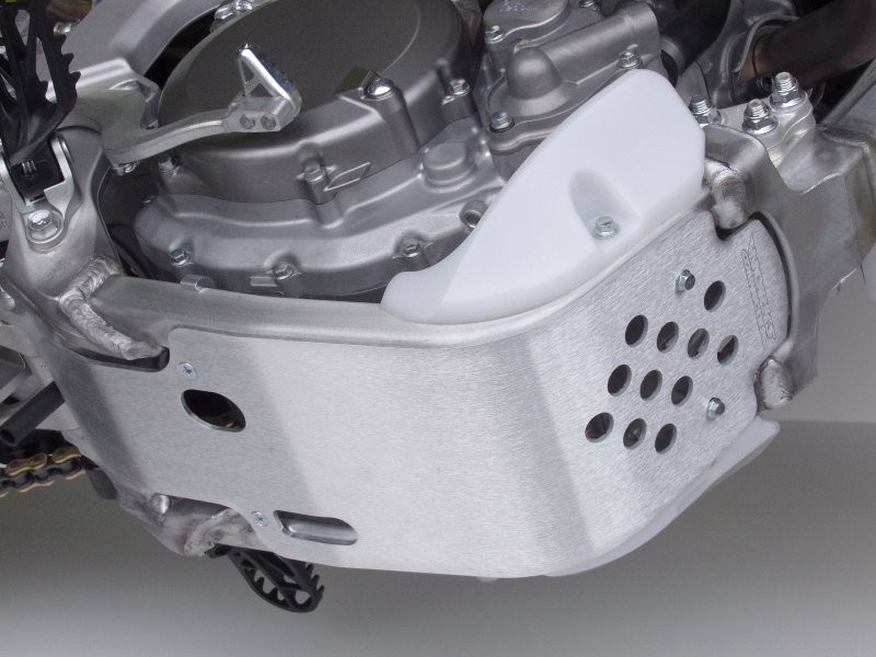 WORKS CONNECTION Skid Plate RMZ450 08-09•Unique Rubber Isolator Mounting System (RIMS) allows frame flex and rigidity properties to perform as the O.E.M. designed•CNC’d and formed from aircraft grade 6061 T-6 aluminum•Specific design and fit for each make and model •Covers to protect frame rails but does not extend beyond rails •CNC’d aluminum brackets with quality hardware for secure mounting. •Skid Plate Foam included. •Made in the USAPartnumber: 10494, 10-494
