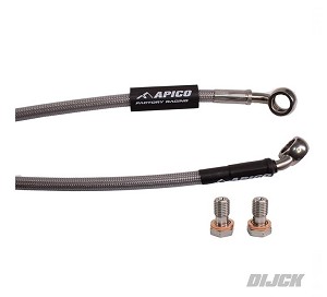 Description Apico Brake and Clutch Hose's are manufactured using only the very best quality braided material and are coated in durable plastic coating to add protection from roost, mud, sand, stones and water, Each Apico hose comes supplied with stainless steel banjo bolts and fittings.