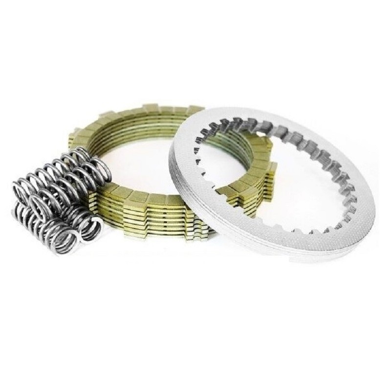 APICO Complete Clutch Kit Including Springs KawasakiKXF250 04-20SuzukiRMZ250 04-06Kit includes:- Friction Plates- Steel Plates- SpringsApico Factory Racing koppelingssets bieden een OEM-kwaliteit koppelingsfunctie en duurzaamheid met een fantastisch gevoel van het overbrengen van de kracht op de wielen. Dit is bereikt door een complete kwaliteitskit te produceren waarbij alle componenten moeiteloos samenwerken. Factory Racing koppelingssets bestaan uit frictieplaten, stalen platen en veren.Apico Factory Racing clutch kits offer an OEM quality clutch function and durability with a fantastic feel of transferring the power to the wheels. This has been achieved by manufacturing a complete quality kit where all the components work effortlessly together. Factory Racing clutch kits consist of friction plates, steel plates and springs.Koppelingsplaten set, Clutch PlatesAPICO Partnumber: CKKXF25004, CK KXF250 04