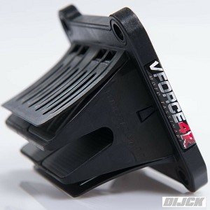 STANDAARD VFORCE REED VALVE FUNCTIES - Verdubbel het oppervlak van de rietpunt ten opzichte van een conventioneel membraanontwerp - Verhoogde onderkant, sterkere middenklasse en langere bovenkant - Meer efficiëntie door verminderde verplaatsing van rietblaadjes - Meer luchtstroom betekent meer pk's - Verminderde slijtage van rietblaadjes - Schroefvrij ontwerp elimineert het risico dat schroeven door de motor gaan - Het schroefvrije ontwerp maakt snelle veranderingen van het blad van het riet mogelijk