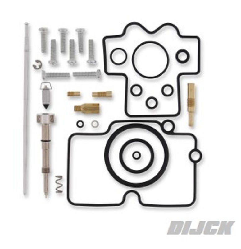 Alle pakkingen, schroefjes, naald en sproeiers die nodig zijn om een carburatuer weer als nieuw te maken.