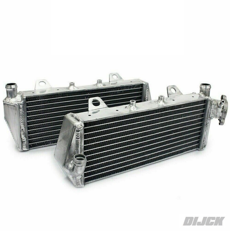 DIJCK Big Radiator Set KTMSXF250 19-22SXF350 19-22SXF450 19-22HUSQVARNAFC250 19-22FC350 19-22FC450 19-22GASGASMCF250 21-22MCF350 22-..MCF450 21-22SET Links + RechtsSET Left + Right- Extra sterk ontworpen- Koelend vermogen 40% hoger dan de standaard radiateur- Overtreft de OEM specificaties- Radiateurs zijn 100 TIG gelast- Volledig gepolijst- Heavy duty designed.- Cooling capacity is increased about 40% than standard radiator.- Exceeds OEM specs.- The core of the radiator is welded in vacuum brazing furnace, no epoxy.- The tanks are 100% welded by TIG - Full polished for the radiators. Radiator Radiateur Cross Reference KTM OEM Partnumbers 79535008100, 50535007100