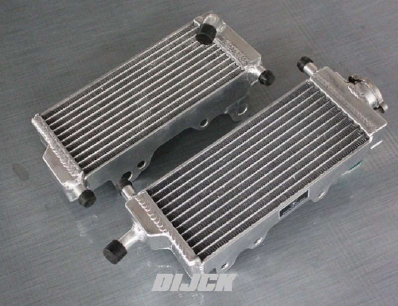 DIJCK Big Radiators Set CR125 04-07SET Links + RechtsSET Left + Right- Extra sterk ontworpen- Koelend vermogen 40% hoger dan de standaard radiateur- Overtreft de OEM specificaties- Radiateurs zijn 100 TIG gelast- Volledig gepolijst- Heavy duty designed.- Cooling capacity is increased about 40% than standard radiator.- Exceeds OEM specs.- The core of the radiator is welded in vacuum brazing furnace, no epoxy.- The tanks are 100% welded by TIG - Full polished for the radiators. Radiator Radiateur
