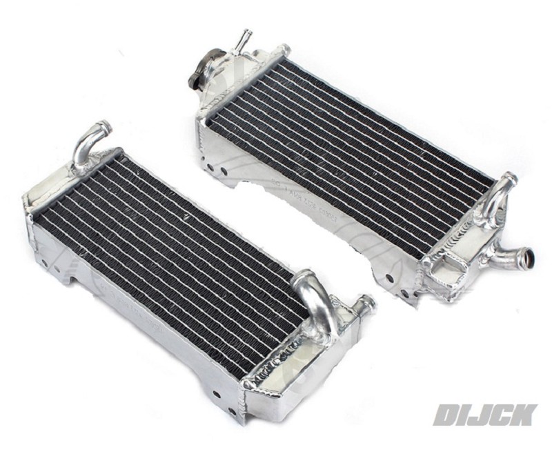 DIJCK Big Radiators Set RM125 01-13SET Links + RechtsSET Left + Right- Extra sterk ontworpen- Koelend vermogen 40% hoger dan de standaard radiateur- Overtreft de OEM specificaties- Radiateurs zijn 100 TIG gelast- Volledig gepolijst- Heavy duty designed.- Cooling capacity is increased about 40% than standard radiator.- Exceeds OEM specs.- The core of the radiator is welded in vacuum brazing furnace, no epoxy.- The tanks are 100% welded by TIG - Full polished for the radiators. Radiator Radiateur