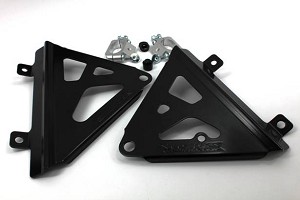 • Durable satin black powder coating • Reinforces radiators to help prevent costly radiator replacement • CNC’d billet bracket system incorporates rubber vibration isolators • Lightweight, custom fit, tuck in cleanly behind radiator shrouds • CNC’d and formed from aircraft grade 5052 aluminum • Simple bolt-on • Mounting hardware included • Made in the USA