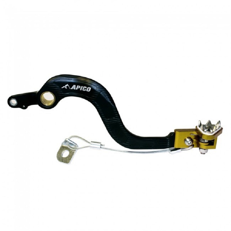 APICO Rear Brake Pedal Black with Yellow TipRM125 01-13Rempedaal, VoetremApico-rempedalen zijn ontworpen en getest op het hoogste niveau. Gefabriceerd van 7075-T6 aluminium en voorzien van een gesmede as van het OEM-type, een geribbelde afwerking op de as verhoogt de grip.Apico Flexible tips zijn van aluminium gemaakt met roestvrijstalen tandplaat en rubberen insert voor grip. De roestvrijstalen tandplaat biedt betere grip en zal niet slijten zoals aluminium tips die u op de markt kunt vinden.Apico-rempedaaltips bevatten ook een stop op de draaipunt. Hierdoor stopt de tip op 90 graden rotatie, waardoor schade wordt voorkomen als de punt onder het koppelingsdeksel draait.Apico-rempedalen worden geleverd met een kabelremslang, dit voorkomt dat de pedaalas bij een aanrijding wordt gebogen.SKU: BPF402