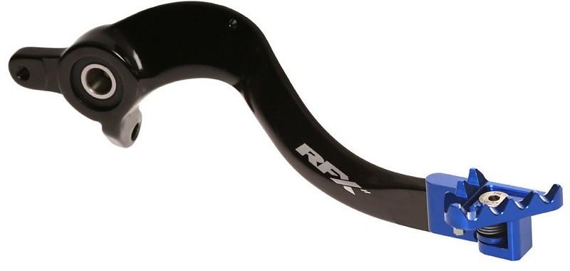 RFX Pro Rear Brake Pedal Black/Blue Flexible TipHUSQVARNATC All 14-17TE All 14-17FC All 14-17FE All 14-17KTMSX/F All 125-525 07-17RFX brake pedal- Brake arm is made of forged A2014 aluminum for durability.- Smooth surface design as OE brake arm.- Black anodized finish with laser print logo.- Brake tip is mode of CNC machined A7079 aluminum with anodized finish.- Bolt, pin and spring are made of stainless steel for less corrosion.- Comes with brake saver.RempedaalSKU: BPF500 Black Blue
