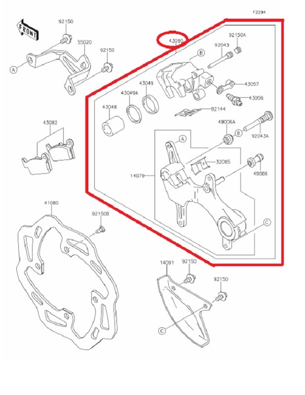 KX OEM Remklauw Compleet + Glijplaat KXF250 06-19 + 21-.. / KXF450 06-18