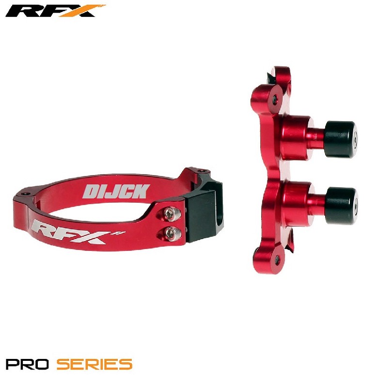 RFX Pro Series 2 Launch Control REDHONDACR250 97-07CRF250 04-26CRF450 04-26KAWASAKIKXF250 06-26KXF450 06-26SUZUKIRM125 01-13RM250 04-13RMZ250 07-26RMZ450 07-26Pro Series 2 CNC Launch ControlRFX Hardware Pro series CNC parts are designed, tested and manufactured for the serious competitor. Using our 30 years of racing and engineering experience we have blended quality designs, superior materials and precision manufacturing processes to create factory racing parts available to everyone. RFX Launch Controls allow you to lower and lock the front suspension to stop the front wheel lifting under hard acceleration off the start gate. The new dual button design allows rider preference in different conditions. New dual button design also features a new plunger which is machined further away to give greater clearance on new KTM models but also has extra reach to ensure max engagement. The new hinged latch design eliminates snag on the rear of the fork guard, by replacing the rear bolt with two smaller bolts in the front. New deeper profile catch eliminates false disengagement when crossing the start gate. Hinged design also allows easy installation.Features Button- New dual button design allows rider preference in different conditions- New dual button plunger sits further away to give greater clearance (KTM)- New dual button plunger also has extra reach to ensure max engagement- New dual button low profile design is only 20g heavier than single button- Four bolt design for greater security- CNC Aerospace grade billet aluminium construction- Hard anodised colourRing- New two bolt design ensures no hindrance on fork guard- New deeper profile latch ensures maximum hold- Easy installation due to hinged design- CNC aerospace grade billet aluminium construction- Hard anodised colour- RFX Hardware laser etched logoStarthulp, Startsysteem