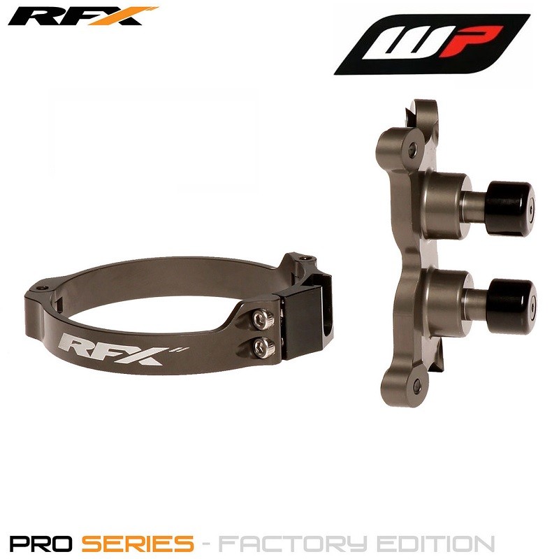 RFX Pro Series 2 Launch Control Hard AnodisedWHITE POWER 52MM ForksKTMWHITE POWER 52MM ForksHUSQVARNAWHITE POWER 52MM ForksPro Series 2 CNC Launch ControlRFX Hardware Pro series CNC parts are designed, tested and manufactured for the serious competitor. Using our 30 years of racing and engineering experience we have blended quality designs, superior materials and precision manufacturing processes to create factory racing parts available to everyone. RFX Launch Controls allow you to lower and lock the front suspension to stop the front wheel lifting under hard acceleration off the start gate. The new dual button design allows rider preference in different conditions. New dual button design also features a new plunger which is machined further away to give greater clearance on new KTM models but also has extra reach to ensure max engagement. The new hinged latch design eliminates snag on the rear of the fork guard, by replacing the rear bolt with two smaller bolts in the front. New deeper profile catch eliminates false disengagement when crossing the start gate. Hinged design also allows easy installation.Features Button- New dual button design allows rider preference in different conditions- New dual button plunger sits further away to give greater clearance (KTM)- New dual button plunger also has extra reach to ensure max engagement- New dual button low profile design is only 20g heavier than single button- Four bolt design for greater security- CNC Aerospace grade billet aluminium construction- Hard anodised colourRing- New two bolt design ensures no hindrance on fork guard- New deeper profile latch ensures maximum hold- Easy installation due to hinged design- CNC aerospace grade billet aluminium construction- Hard anodised colour- RFX Hardware laser etched logoStarthulp, Startsysteem