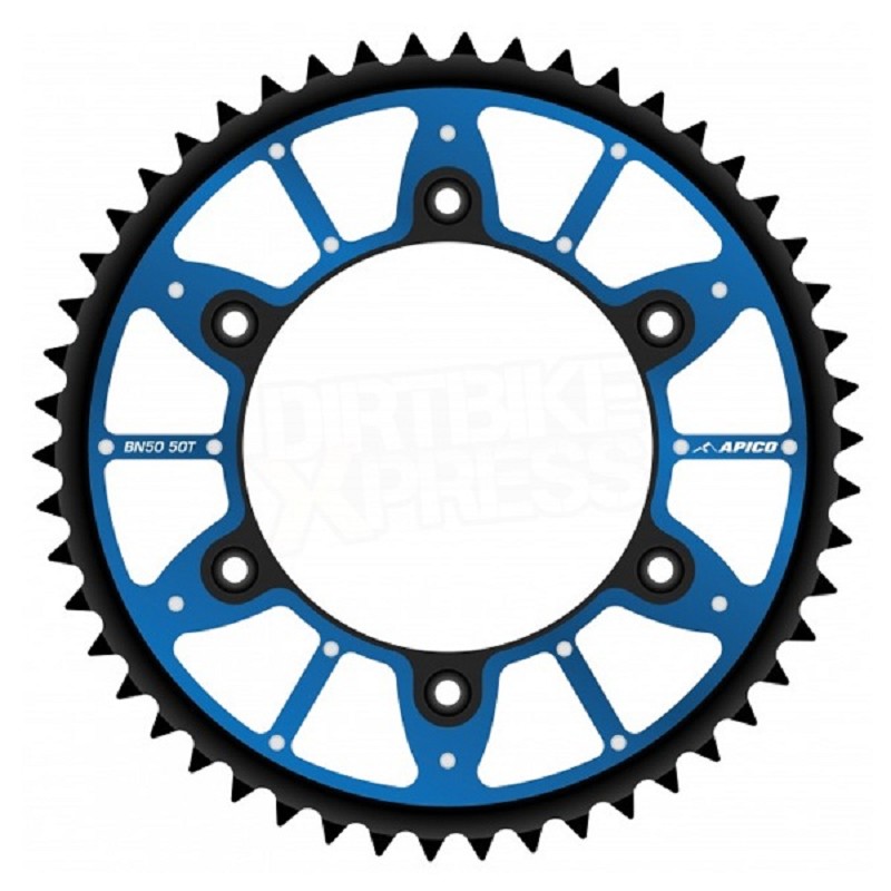 APICO XTREME Rear Spocket BLACK/BLUE50TKTMSX 90-23SXF 90-23EXC 90-23EXC-F 90-23HUSQVARNATC 14-23TE14-23FC14-23FE14-23GASGASMC 21-23EC 21-23EX 21-23TRIUMPHTF-X 250 24-..TF-X 450 26-..Partnumber: BN50 50T BK/BU, BN5050TBKBU