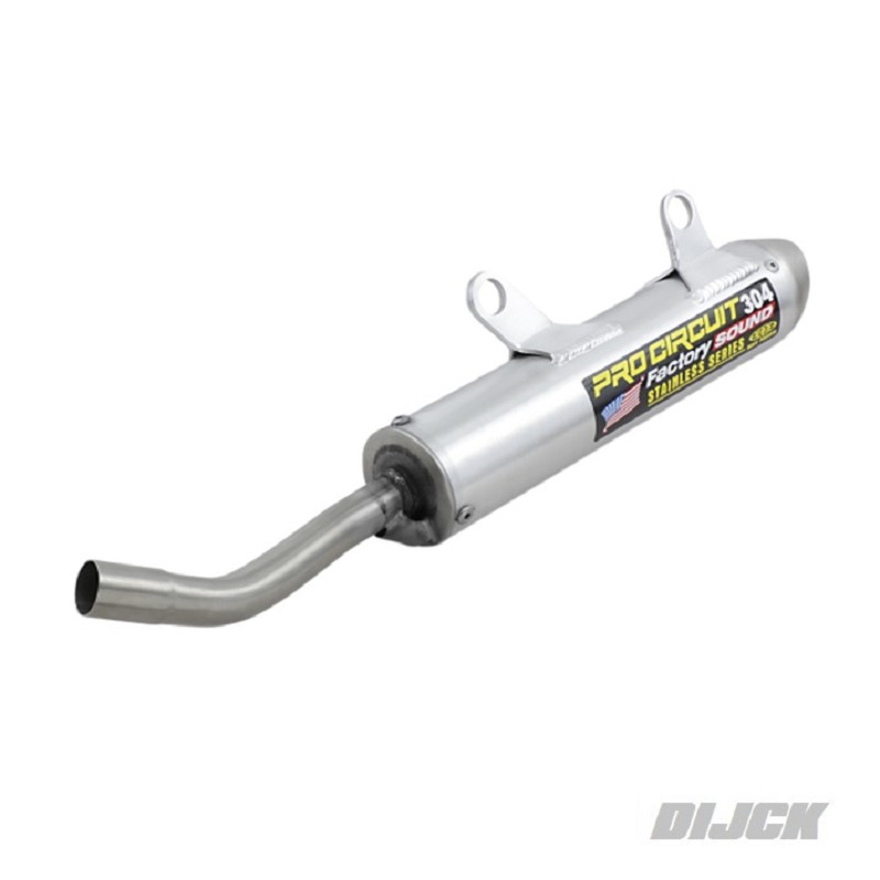 PRO CIRCUIT 304 Silencer KTMSX125 23-25HUSQVARNATC125 23-25GASGASMC125 24-25Description:- Feature a longer midsection and more noticeable over-rev- Excellent replacement for the OEM silencer while offering impressive performance gains- 6061 T-6 brushed aluminum housing- 304 stainless steel intake tube- Double-walled mounting brackets- FIM-approved 304 stainless steel end cap- Steel Allen head screws for re-building/repacking- Exclusive E-glass pillow packing PRO CIRCUIT Partnumber: 1052312