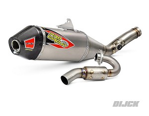 Features Include: •Improves performance •Titanium construction throughout head pipe, mid pipe, and canister •Carbon fiber end-cap construction •Equipped with RC-4 Resonance Chamber to reduce noise output •Machined aluminum muffler bracket for increased strength and durability •Asymmetrical muffler configuration for increased packing volume •Machined mid pipe to head pipe joint for a better, leak free fit •Removable USFS approved spark arrestor •TIG precision welding •Made in the USA