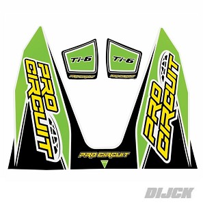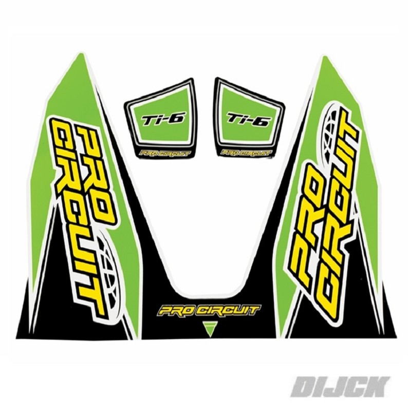 PRO CIRCUIT TI-6 Replacement Sticker Kit Exhaust Decals FACTORYGREENKit contains of:- 1 Stikker for Silencer Tube- 2 Stickers for EndcapSKU: DC22TI6-GRN, DC22TI6GRN