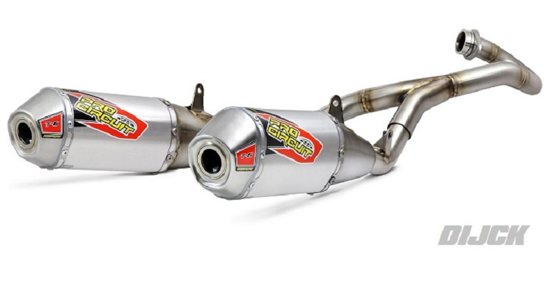 PRO CIRCUIT T-6 Stainless Steel Dual System CRF450 17-19• Wordt gebruikt door veel grote fabrieksteams en rijders in Amerika en Europa• T-6 systeem levert hetzelfde vermogen als een Ti-6 systeem.• Vervaardigd van Aluminium en RVS.• Voorbocht uitgevoerd met RC-4 "resonance chamber" om het geluid te verminderen.• Perfecte passing, systeem kan zonder enige aanpassing zo gemonteerd worden.PRO CIRCUIT Partnumber 0111745G2