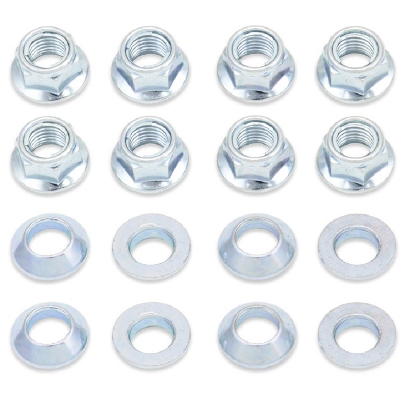BOLT Lug-Locks (set of 8)SILVEROmschrijving- Past op: alle Japanse ATV's UTV's- Ontworpen om het probleem van loslopende moeren te verminderen.- Bevat acht borgmoeren voor velgen die een platte wielmoer gebruiken en acht taps toelopende adapters voor velgen die een taps toelopende wielmoer gebruiken.- Gebruik gewoon de taps toelopende bus in combinatie met de platte wielmoeren wanneer uw wielen taps toelopende nokken nodig hebben- Ideaal voor standaard- of schoepenwielen, voldoet aan of overtreft OEM-specificaties Discription Fits: All full size Japanese sport and utility ATVsDesigned to eliminate the troublesome problem of lugs that work their way looseContains eight locking nuts for lugs that use a flat lug nut and eight tapered adaptors for lugs the use a tapered lug nutSimply use the tapered bushing in conjunction with the flat lug nuts when your wheels require tapered lugsIdeal for stock or paddle wheels, meets or exceeds OEM specificationsSKU: 2005-LUG.S