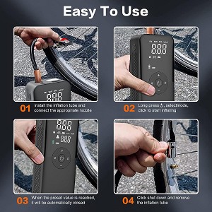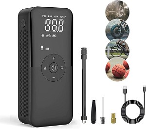 DIKE Draagbare Elektrische Bandenpomp Voor elk type band.ProductbeschrijvingProductbeschrijvingMini compressor voor het oppompen van bijvoorbeeld je crossband, fietsband, autoband of ballonnen. Door het super compacte ontwerp is deze compressor perfect om onderweg mee te nemen zodat je nooit voor verrassingen komt te staan. De oplaadbare compressor laad je op met een USB-kabel, deze wordt meegeleverd.Oplaadbare compressor mini• Tot 10 Bar• Debiet 8L/min• Max stroom 6A• Digitaal scherm voor snel en nauwkeurig lezen• Drukmeeteenheden: Bar/Psi/Kpa• Opbergtas meegeleverd• LED zaklamp• USB oplaadbaar (kabel meegeleverd)• 2500mAh Li-batterij• Voor Presta / Schrader ventielen• Afmetingen: 200x40x45mmIn de verpakking:* Minicompressor* Lucht slang* Laadkabel* Verschillende opzetstukjesPartnumber: DAIRPUMP