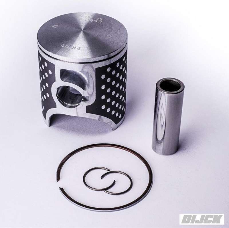 - High precision forged piston - Reduced top land - Nitrided steel rings - Exclusive MoS2 coating featured by specific pockets to facilitate cylinder/piston smoothness - Built for racing applications