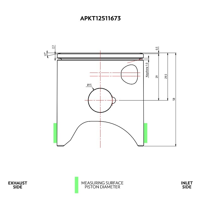 VHM Piston SX125 01-22 / TC125 14-22 / MC125 21-22 Flat Top 12° C 53.97mm