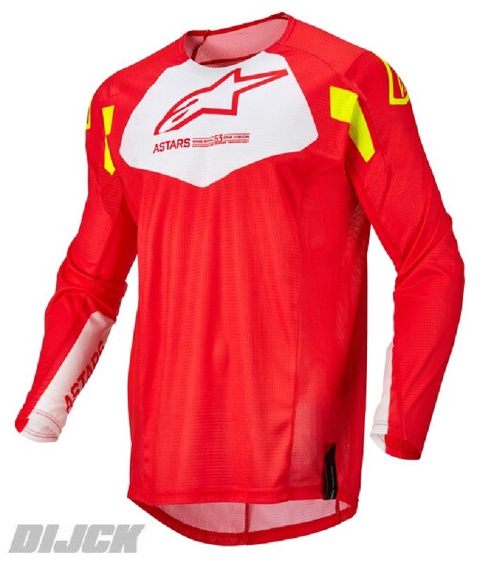 ALPINESTARS Jersey Techstar Factory Red Fluo / White / Yellow FluoSize S- Ergonomic, semi-raglan, pre-shaped sleeves are shaped in the riding position for reduced rider fatigue and feature a non-stitched / no chafe armpit gusset panel for optimized comfort in a critical area. - Tape-welded, low profile and seamless neck opening for ease of use and enhanced rider comfort.- Extended rear for greater coverage in the riding position and compatibility with Alpinestars MX Pants.- Sublimated fade-resistant graphics.ALPINESTARS Partnumber: 37610223025