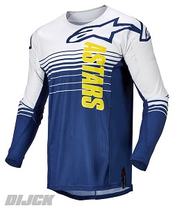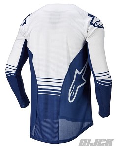 ALPINESTARS Jersey Techstar Phantom Dark Blue / WhiteSize S- Ergonomic, semi-raglan, pre-shaped sleeves are shaped in the riding position for reduced rider fatigue and feature a non-stitched / no chafe armpit gusset panel for optimized comfort in a critical area. - Tape-welded, low profile and seamless neck opening for ease of use and enhanced rider comfort.- Extended rear for greater coverage in the riding position and compatibility with Alpinestars MX Pants.- Sublimated fade-resistant graphics.ALPINESTARS Partnumber: 3760122772