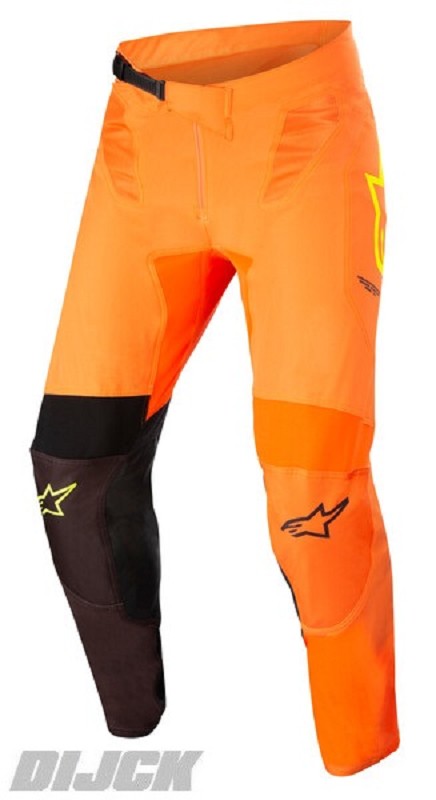 ALPINESTARS Pants Supertech Blaze Orange / Black / Yellow FluoSize 38- 3D Leather knee panels backed with 300 Denier are designed to work with knee braces for riding feel, grip and control, while also delivering high levels of heat resistance and durability.- 600 Denier reinforcements on seat area provide seam strength, durability and coverage in a critical area.- Dual-Layer 600 Denier knee panel for durability and freedom of movement.- Stretch mesh inserts a back of knee and leg lover aid flexibility, air flow and comfort when waring MX boots.- Open mesh inserts are positioned to channel cooling air into the hip area and exit warm air at the back.- Silicon print on inner waist to keep the pants in position.- Sublimated fade-resistant graphics.ALPINESTARS Partnumber: 37204224155