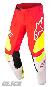 ALPINESTARS Pants Techstar FactoryRed Fluo / White / Yellow FluoSize 38- Highly abrasion resistant and durable poly-fabric reinforcement on the seat area.- Four-way stretch panels are strategicallypositioned for optimized freedom of movement. - Localized laser cut perforation zones for high levels of cooling airflow.- Leg cuff features a stretch mesh insert for easy on and off.- Sublimated fade-resistant graphics.- Ergonomic inner leg leather patch is longer to adapt better to the new Alpinestars protectors while ensuring optimized contact with the bike.ALPINESTARS Partnumber: 37210223025