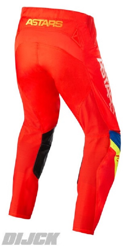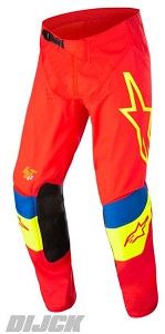 ALPINESTARS Pants Techstar Quadro Bright Red / Yellow Fluo / BlueSize 38- Highly abrasion resistant and durable poly-fabric reinforcement on the seat area.- Four-way stretch panels are strategicallypositioned for optimized freedom of movement. - Localized laser cut perforation zones for high levels of cooling airflow.- Leg cuff features a stretch mesh insert for easy on and off.- Sublimated fade-resistant graphics.- Ergonomic inner leg leather patch is longer to adapt better to the new Alpinestars protectors while ensuring optimized contact with the bike.ALPINESTARS Partnumber: 37211223057