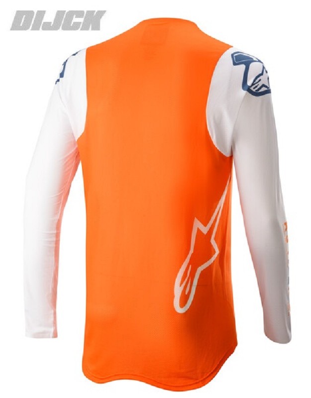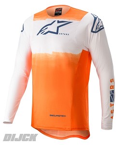 ALPINESTARS Jersey Supertech Foster White / Orange / Dark BlueSize S- Tape-welded, low profile, seamless neck opening for comfort.- Sleeves are pre-shaped to the riding position for reduced rider fatigue.- Extended back panel length for greater coverage on the back- Overlook stitching process for optimal comfort and resistance while maintaining stretch performance.- Sublimated fade-resistant graphics.ALPINESTARS Partnumber: 37607222407