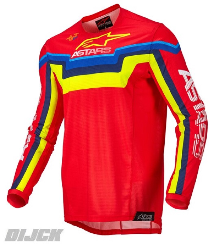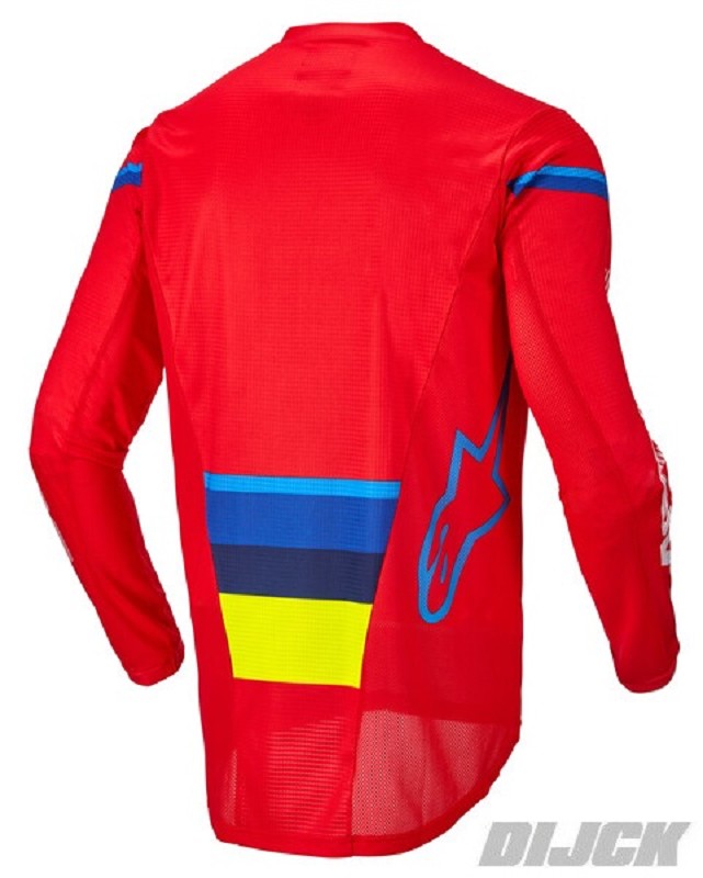 ALPINESTARS Jersey Techstar Quadro Bright Red / Yellow Fluo / BlueSize S- Ergonomic, semi-raglan, pre-shaped sleeves are shaped in the riding position for reduced rider fatigue and feature a non-stitched / no chafe armpit gusset panel for optimized comfort in a critical area. - Tape-welded, low profile and seamless neck opening for ease of use and enhanced rider comfort.- Extended rear for greater coverage in the riding position and compatibility with Alpinestars MX Pants.- Sublimated fade-resistant graphics.ALPINESTARS Partnumber: 37611223057